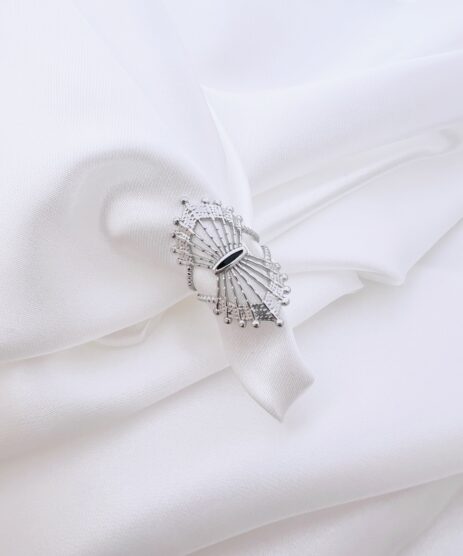 Δαχτυλίδι από ανοξείδωτο ατσάλι με ρυθμιζόμενο άνοιγμα και ημιπολύτιμη πέτρα τουρμαλίνη μαύρη