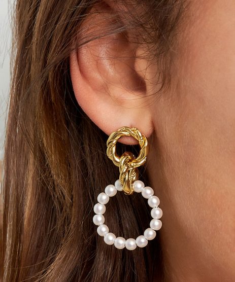Τα σκουλαρίκια έχουν διαστάσεις 1,5 x 3,5 cm και είναι κατασκευασμένα από ανοξείδωτο ατσάλι σε χρυσό και μαργαριτάρια γλυκού νερού.
