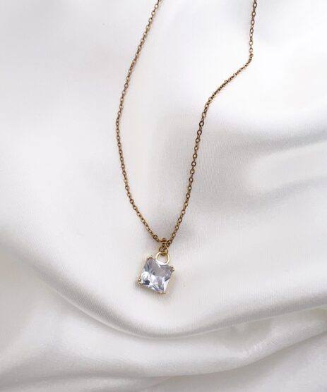 Το κολιέ είναι κατασκευασμένο από ανοξείδωτο ατσάλι σε χρυσό χρώμα και έχει ρυθμιζόμενο κούμπωμα. Χάρη σε αυτό το κούμπωμα μπορείτε να φορέσετε το κολιέ από 39 cm έως 46 cm.
