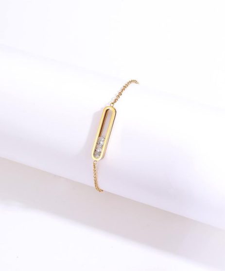Το βραχιόλι είναι κατασκευασμένο από ανοξείδωτο ατσάλι σε χρυσό με κινούμενα κρύσταλλα.Έχει ρυθμιζόμενο κούμπωμα.Χάρη σε αυτό το κούμπωμα μπορείτε να φορέσετε το βραχιόλι από 16 cm έως 21 cm.