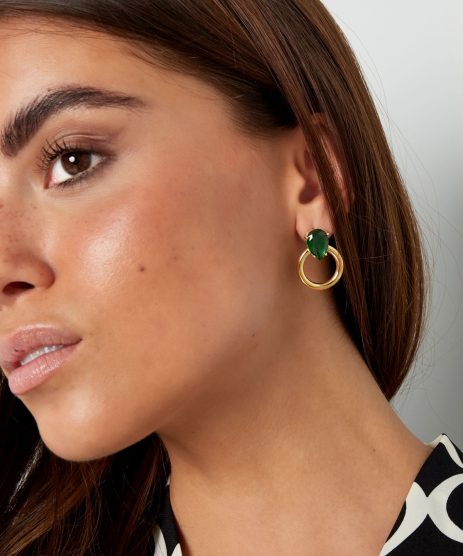 Σκουλαρίκια από ανοξείδωτο ατσάλι σε χρυσό, με κόκκινα κρύσταλλα