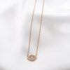 Το κολιέ είναι κατασκευασμένο από ανοξείδωτο ατσάλι σε χρυσό χρώμα και κρύσταλλo και έχει ρυθμιζόμενο κούμπωμα. Χάρη σε αυτό το κούμπωμα μπορείτε να φορέσετε το κολιέ από 41 cm έως 46 cm.