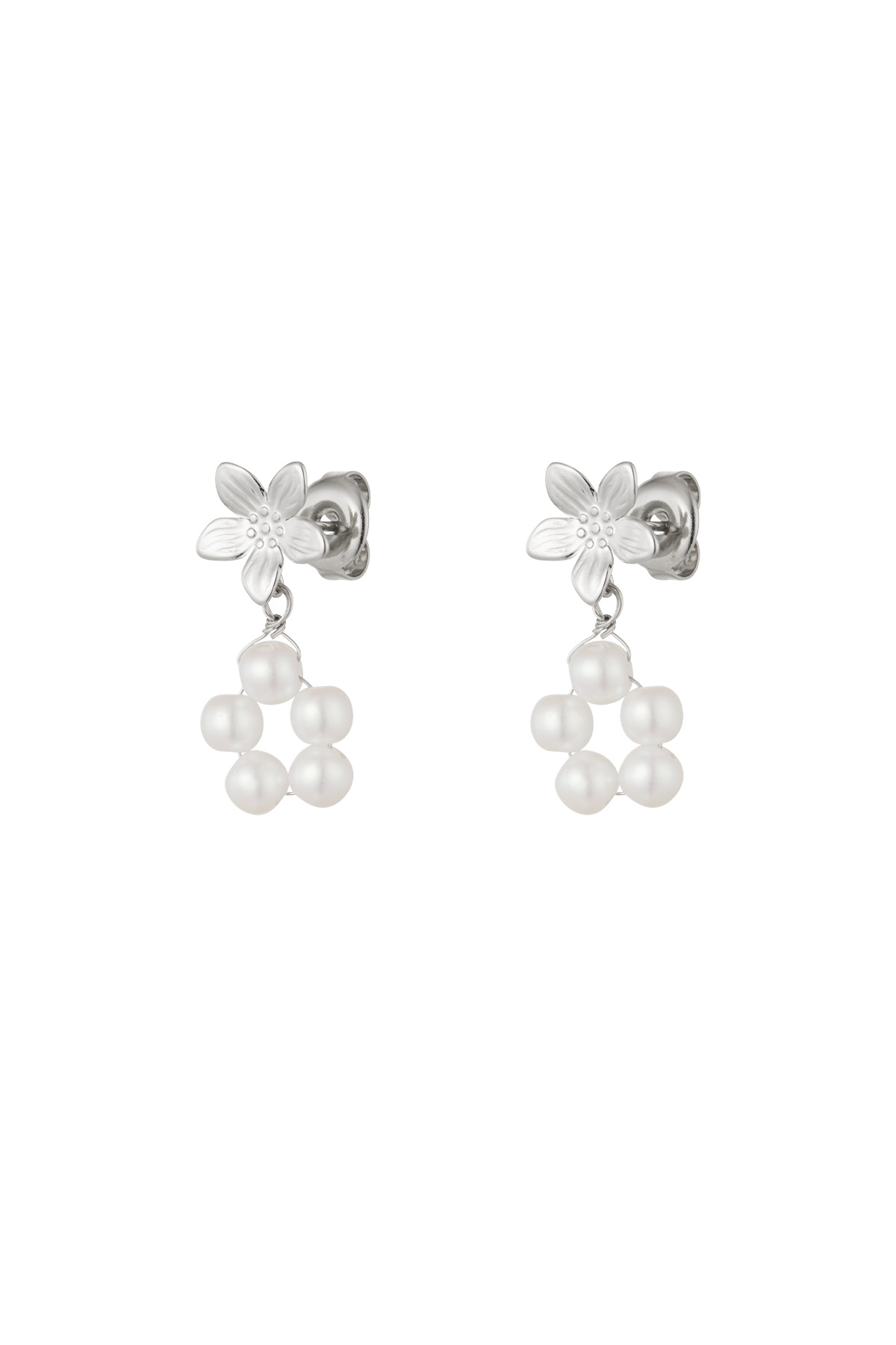 Τα σκουλαρίκια είναι κατασκευασμένα από ανοξείδωτο ατσάλι σε ασημί χρώμα με μαργαριτάρια γλυκού νερού