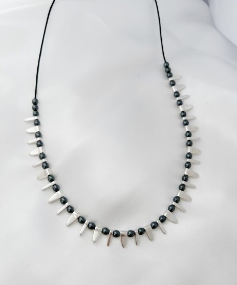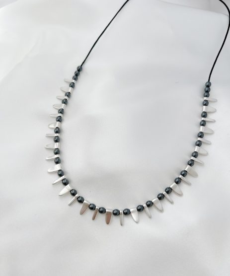Κολιέ, από μέταλλο κασσίτερου επιπλατινωμένο με ασήμι 925 και ημιπολύτιμες πέτρες αιματίτη