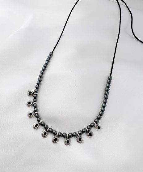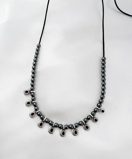 Κολιέ, από μέταλλο κασσίτερου επιπλατινωμένο με ασήμι 925 και ημιπολύτιμες πέτρες αιματίτη