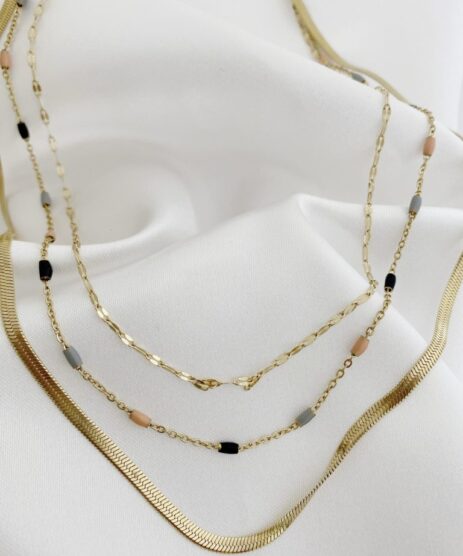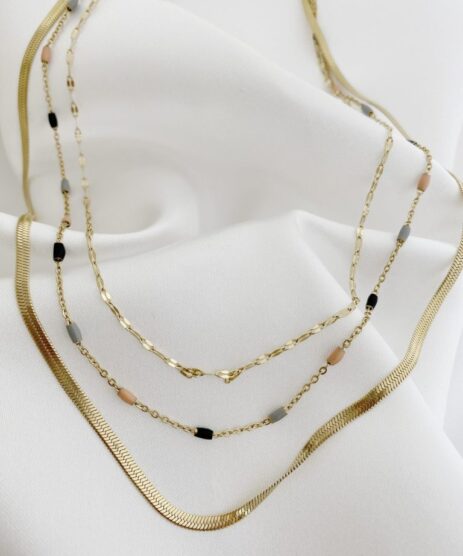 Κολιέ, αλυσίδα, τριπλό , από ανοξείδωτο ατσάλι σε χρυσό