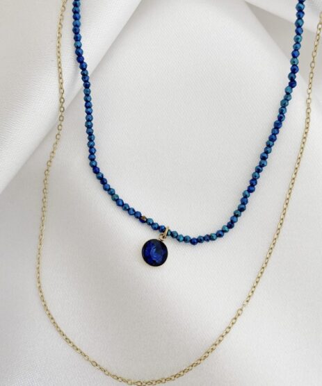 Κολιέ, διπλό , από ανοξείδωτο ατσάλι σε χρυσό με μπλε κρύσταλλα