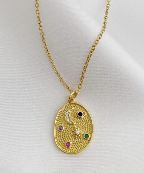 Κολιέ, από ανοξείδωτο ατσάλι σε χρυσό με πολύχρωμα zircon κρύσταλλα