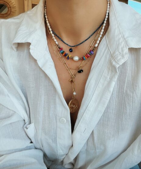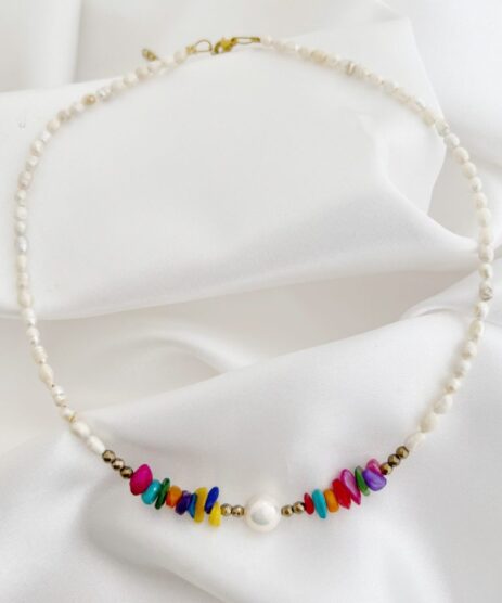 Κολιέ, με καλλιεργημένα μαργαριτάρια και πολύχρωμες πέτρες χαουλίτη chips