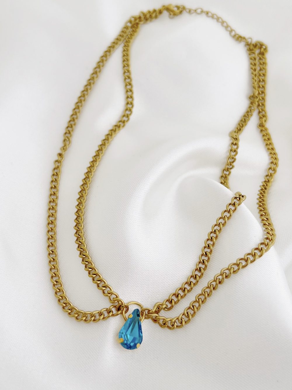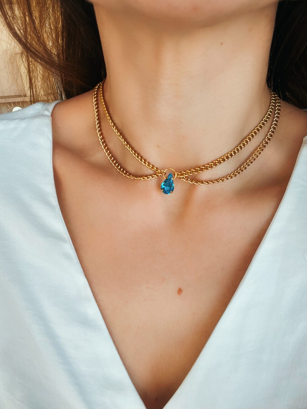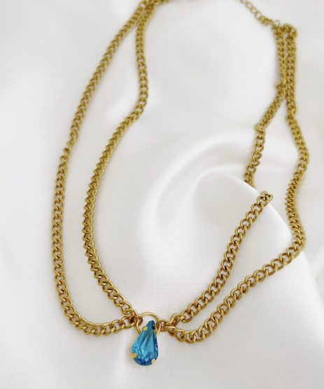 Κολιέ,  από ανοξείδωτο ατσάλι σε χρυσό με διπλή αλυσίδα και κρύσταλλο Swarovski