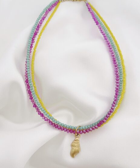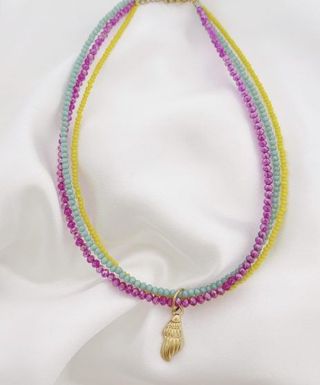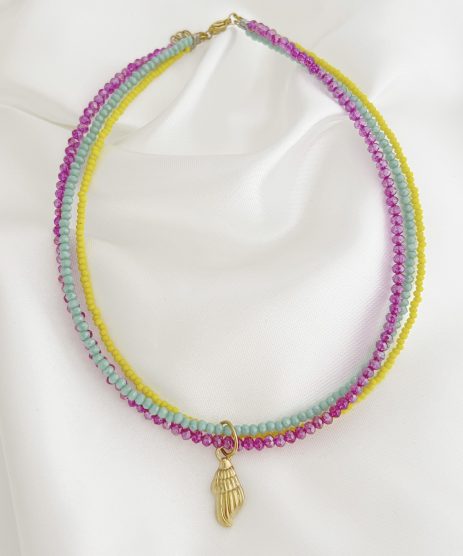Κολιέ, τριπλό, από ανοξείδωτο ατσάλι με γυάλινες χάντρες