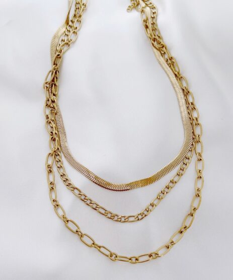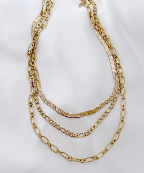 Κολιέ, αλυσίδα τριπλή, από ανοξείδωτο ατσάλι σε χρυσό