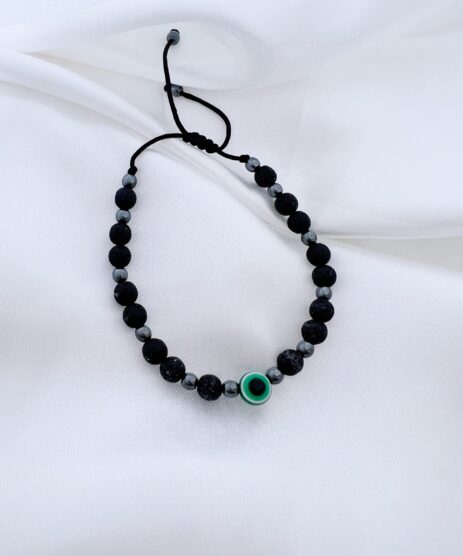 Bραχιόλι από ανοξείδωτο ατσάλι σε ασημί, με ημιπολύτιμες πέτρες λάβα Βεζούβιου και αιματίτη