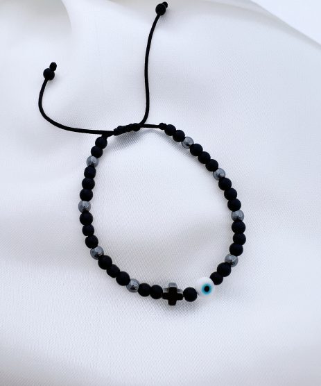 Bραχιόλι από ανοξείδωτο ατσάλι σε ασημί, με ημιπολύτιμες πέτρες λάβα Βεζούβιου και αιματίτη