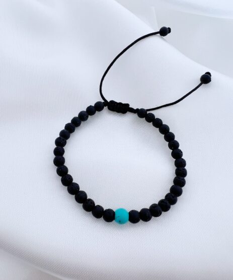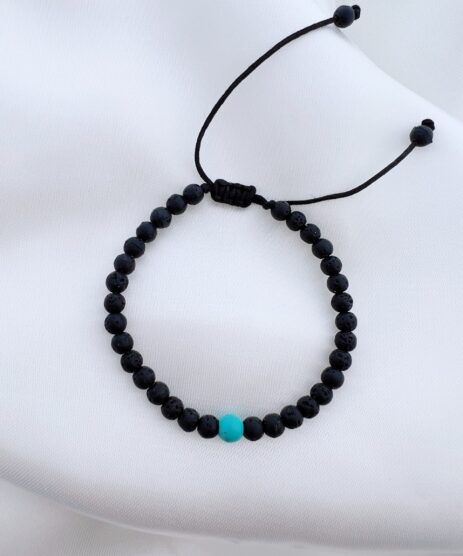 Bραχιόλι από ανοξείδωτο ατσάλι σε ασημί, με ημιπολύτιμες πέτρες λάβα Βεζούβιου και αιματίτη