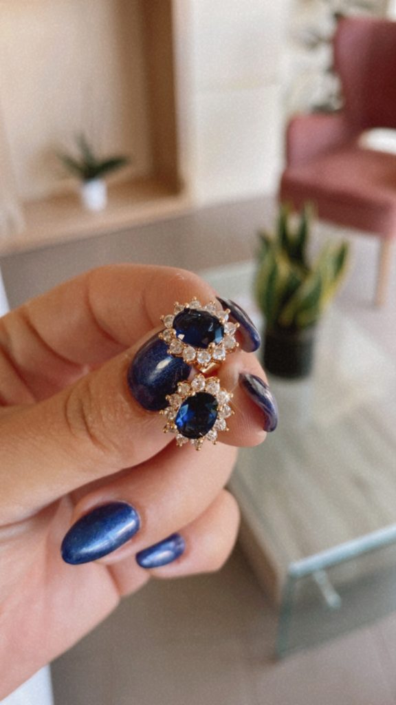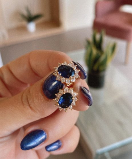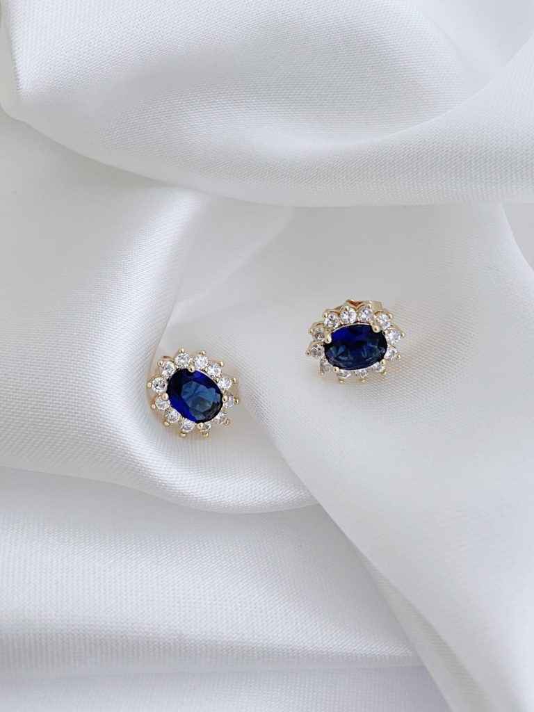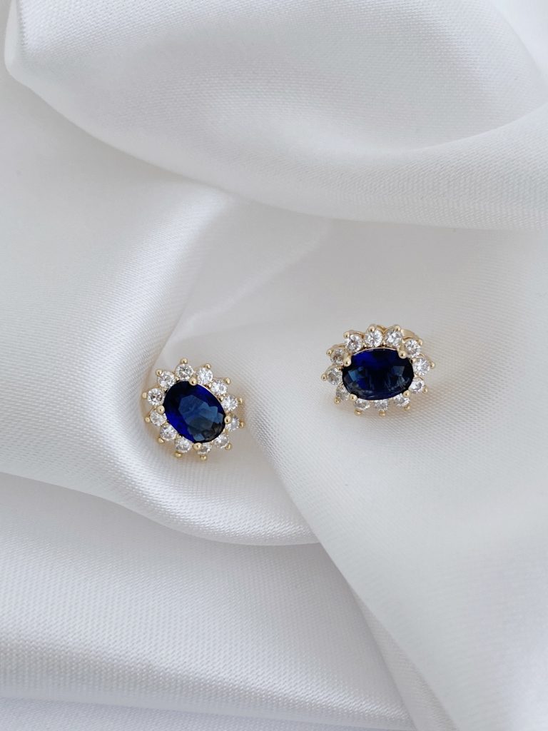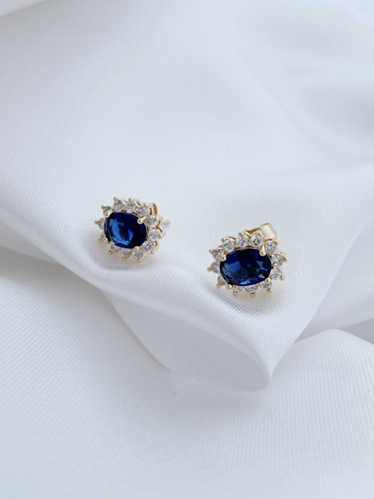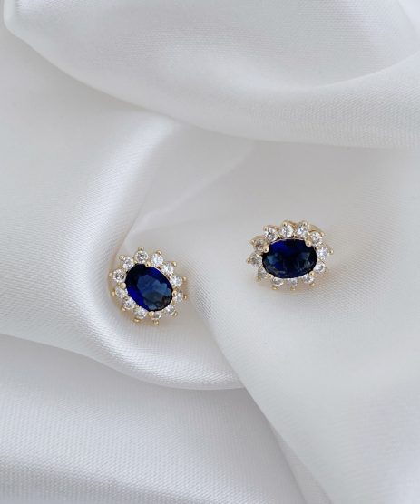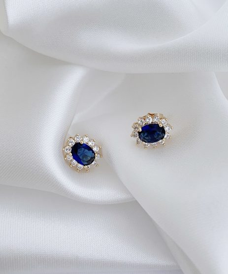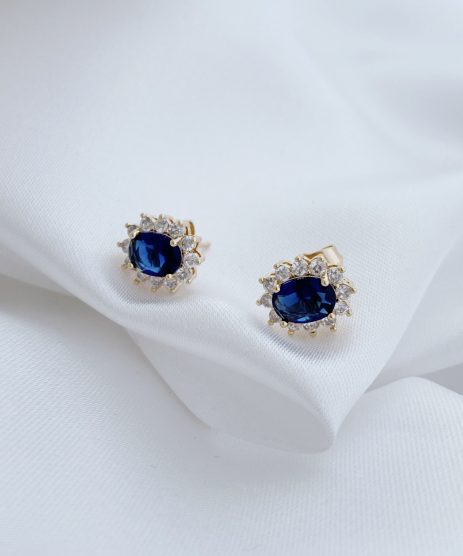 Σκουλαρίκια, copper σε χρυσό με μπλε κρύσταλλο και λευκά zircon