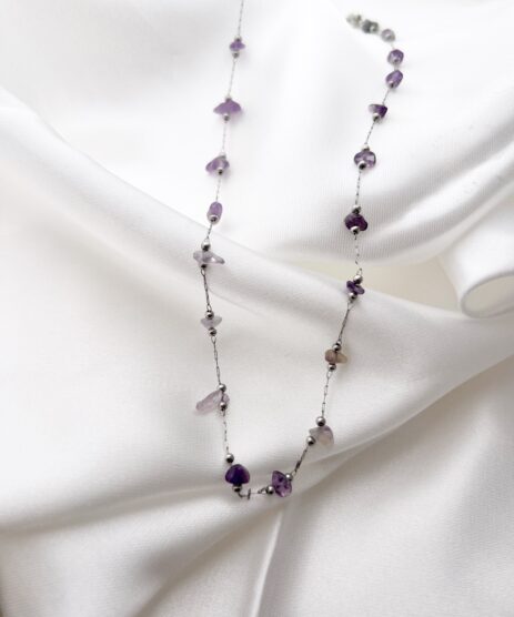 Κολιέ με πέτρες αμέθυστου. Έχει ρυθμιζόμενο κούμπωμα και μπορείτε να φορέσετε το κολιέ από 39 cm έως 46 cm.