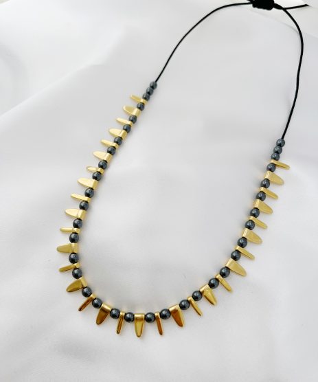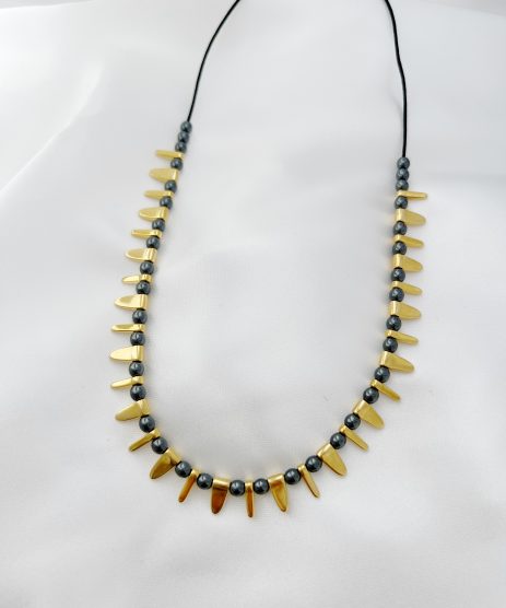 Κολιέ, από μέταλλο κασσίτερου επιχρυσωμένο με ασήμι 925 και ημιπολύτιμες πέτρες αιματίτη