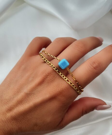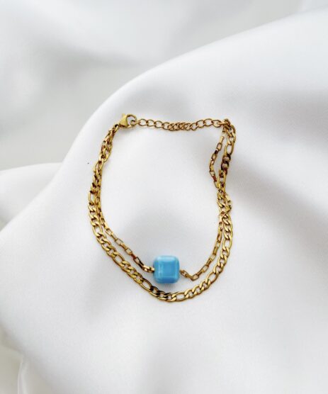 Βραχιόλι, διπλό, από ανοξείδωτο ατσάλι σε χρυσό με κεραμικό κύβο